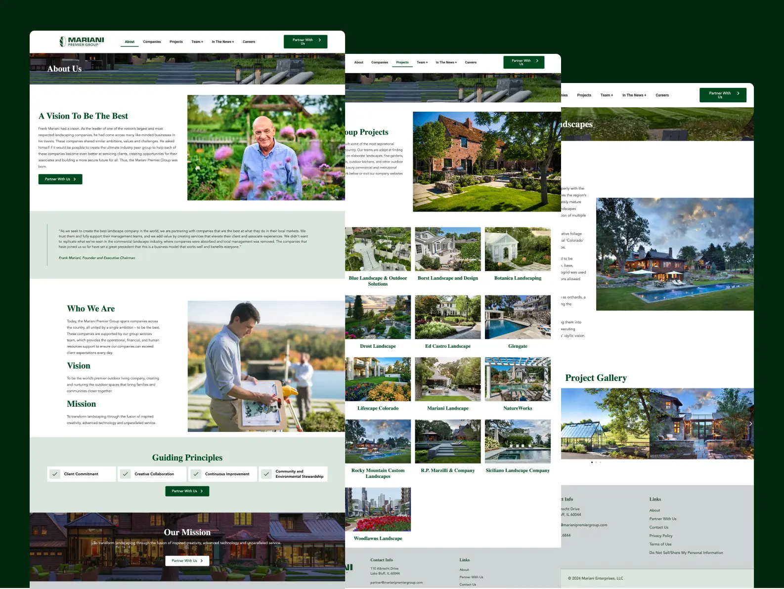 Mariani Premier Group spans companies across the country, all united by a single ambition – to be the world’s premier outdoor living company, creating and nurturing the outdoor spaces that bring families and communities closer together. These companies are supported by our group services team, which provides the operational, financial, and human resources support to ensure our companies can exceed client expectations every day.